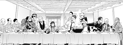 アニメやドラマでも話題になった、ゴールデンカムイの“最後の晩餐”構図。