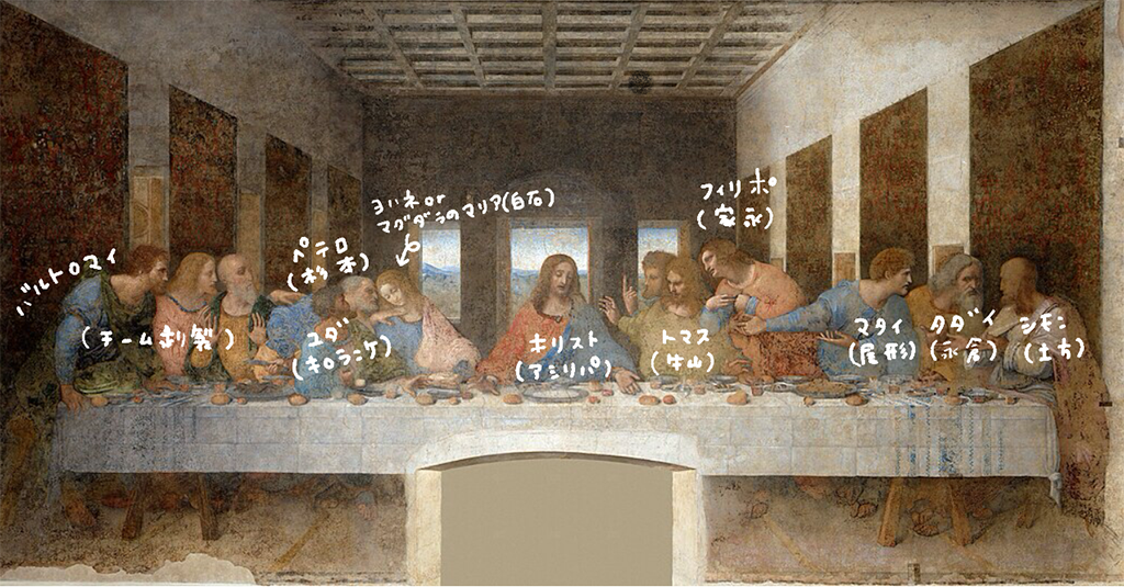 ダ・ヴィンチ版にキリストの弟子と金カムキャラの名前を書き込んだ。
