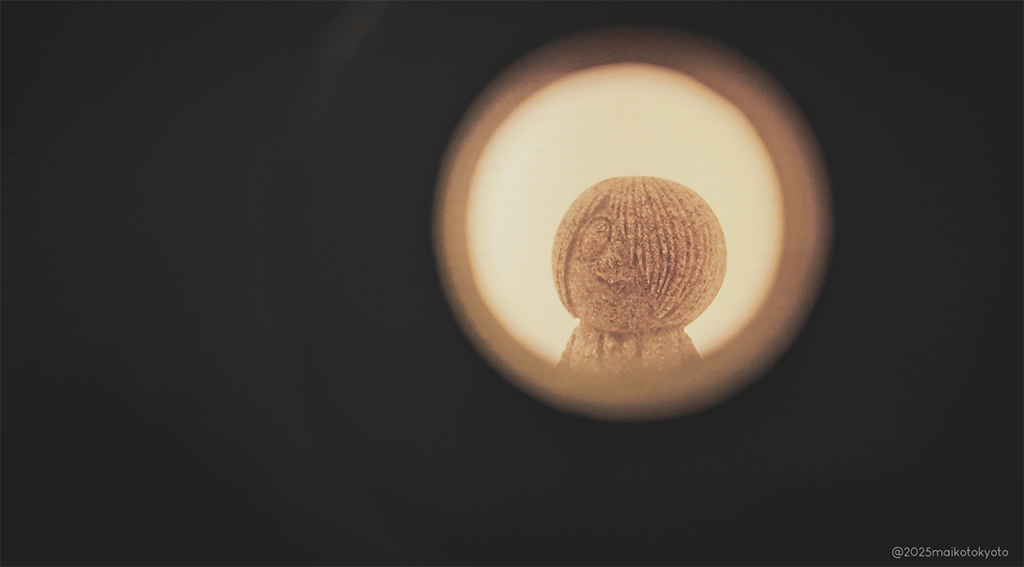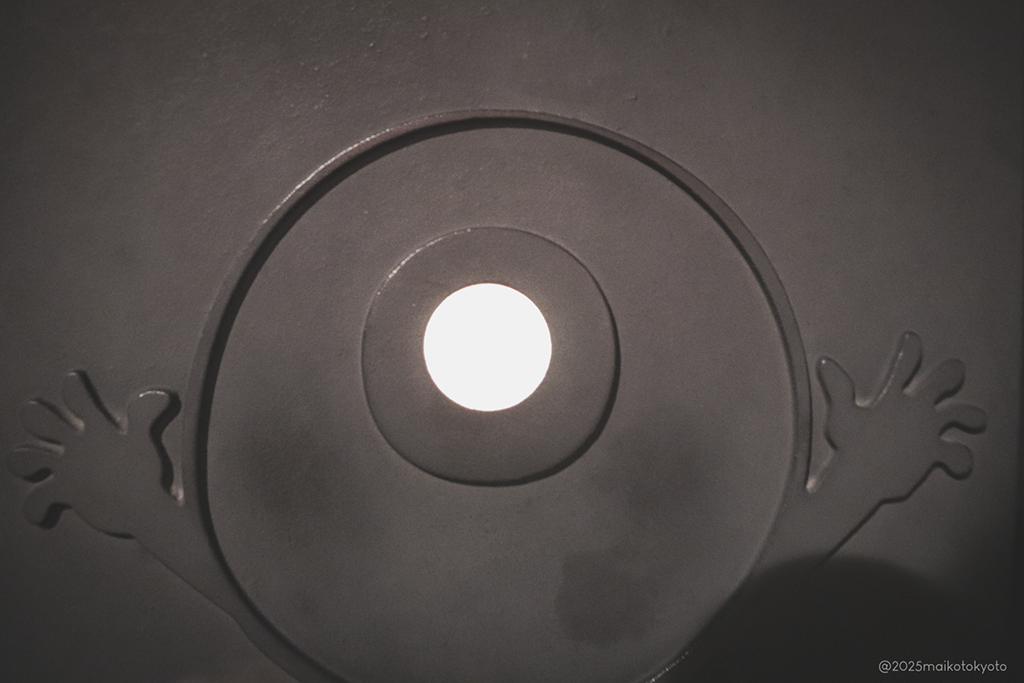 気になって私も近づく。柱の中には、目玉の親父が彫られていた。