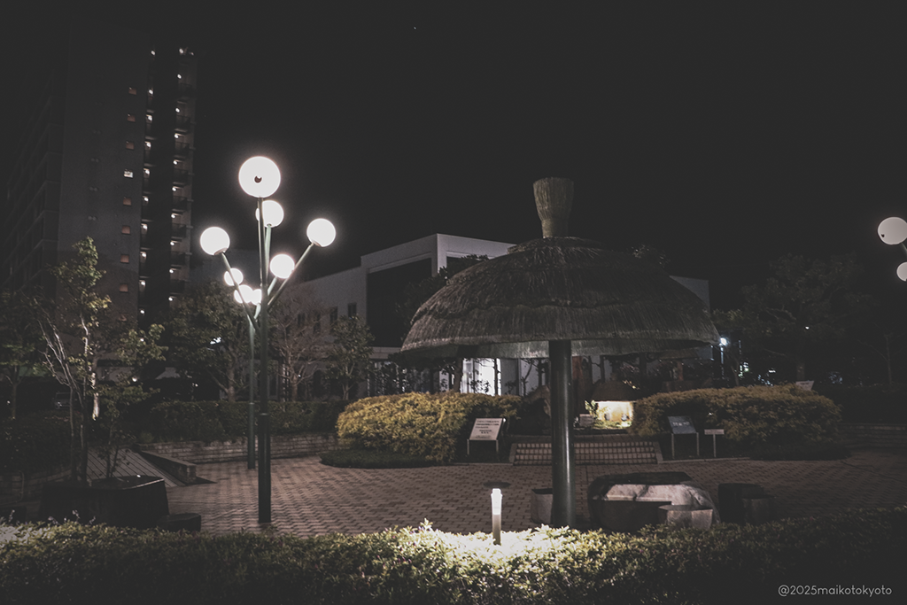 歪な形の街路樹が照明に照らされ、いかにも妖怪然としてその葉を揺らしていた。