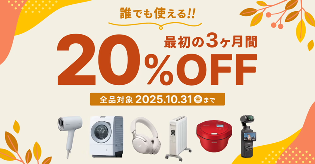 加湿器や暖房といった季節家電や、しばらく使ってみたいアイテムが割安でレンタルできる月額プラン。