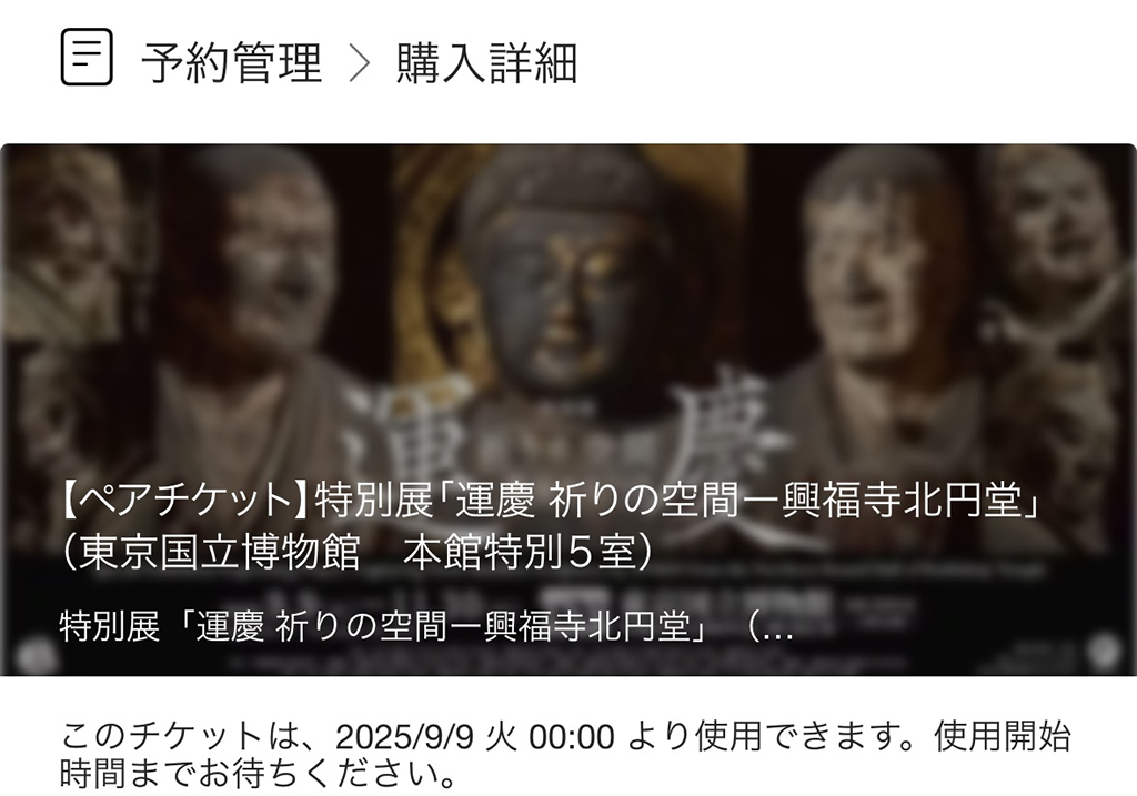 事前にappで検索しておくか、以下の運慶展チケットのページをブクマしておくのが便利。